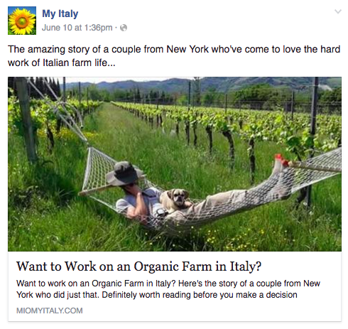 Today, I'm excited to be sharing with more people who share our love of Italy and have an interest in farming thanks to My Italy! I reached out to Maria from My Italy months ago to see about guest blogging. Today she shared our story on her page and blog. Here's a clip:
